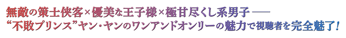 皇室と6つの州の7つの勢力に分かれている大東(たいとう)国は、権力の象徴である令牌(れいはい)・玄極令(げんきょくれい)を使い、皇帝が6州をまとめていた。ある日、玄極令が突如として皇帝のもとから消えてしまい、これを手に入れた冀(き)州の将軍・燕瀛洲(えんえいしゅう)は、各州の勢力から追われるように。一方、江湖(こうこ)には、長年優劣を競い合っている2人の強者(つわもの)、隠泉水榭(いんせんすいしゃ)の榭主・黒豊息(こくほうしょく)と天霜門(てんそうもん)の女侠(じょきょう)・白風夕(はくほうせき)がいた。白風夕は山の中で大勢の追っ手に囲まれている燕瀛洲を間一髪のところで救うが…。